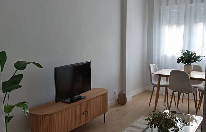 El apartamento cuenta con dos habitaciones dobles, una de ellas con balcón, baño completo con ducha salón comedor con sofá, tv y mesa de comedor para cuatro personas, cocina totalmente equipada, conexión wifi, gratuita.